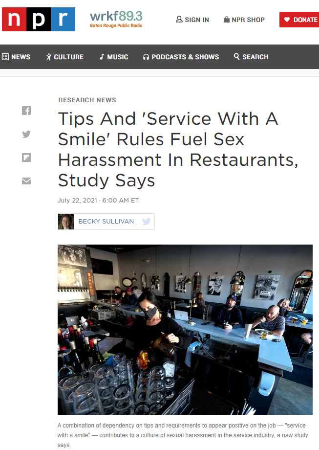 Tips And 'Service With A Smile' Rules Fuel Sex Harassment In Restaurants, Study Says : NPR